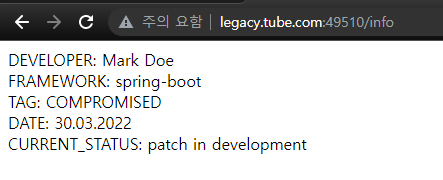 그리고 소스코드 보기 했을 때 최다하단에 주석문으로 /info 경로가 있다고 알려주고 있습니다.