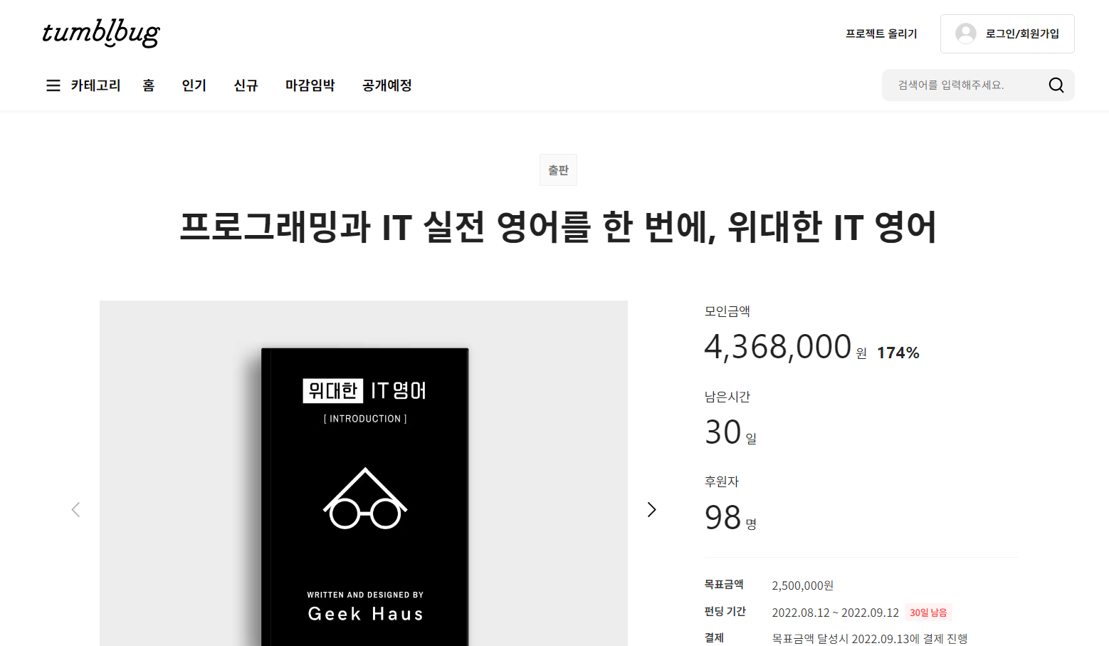 긱하우스의 IT 영어 교재와 더불어 다른 상품에 대한 크라우드 펀딩이 2022년 8월 12일부터 9월 12일까지 이루어지고 있으니,