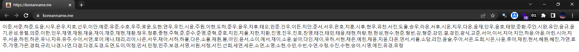 좌측에는 남자 이름과 우측에는 여자 이름으로 보입니다. 랭킹 목록에 나열되어 있는 모든 이름을 javascript 로 파싱해와보겠습니다.