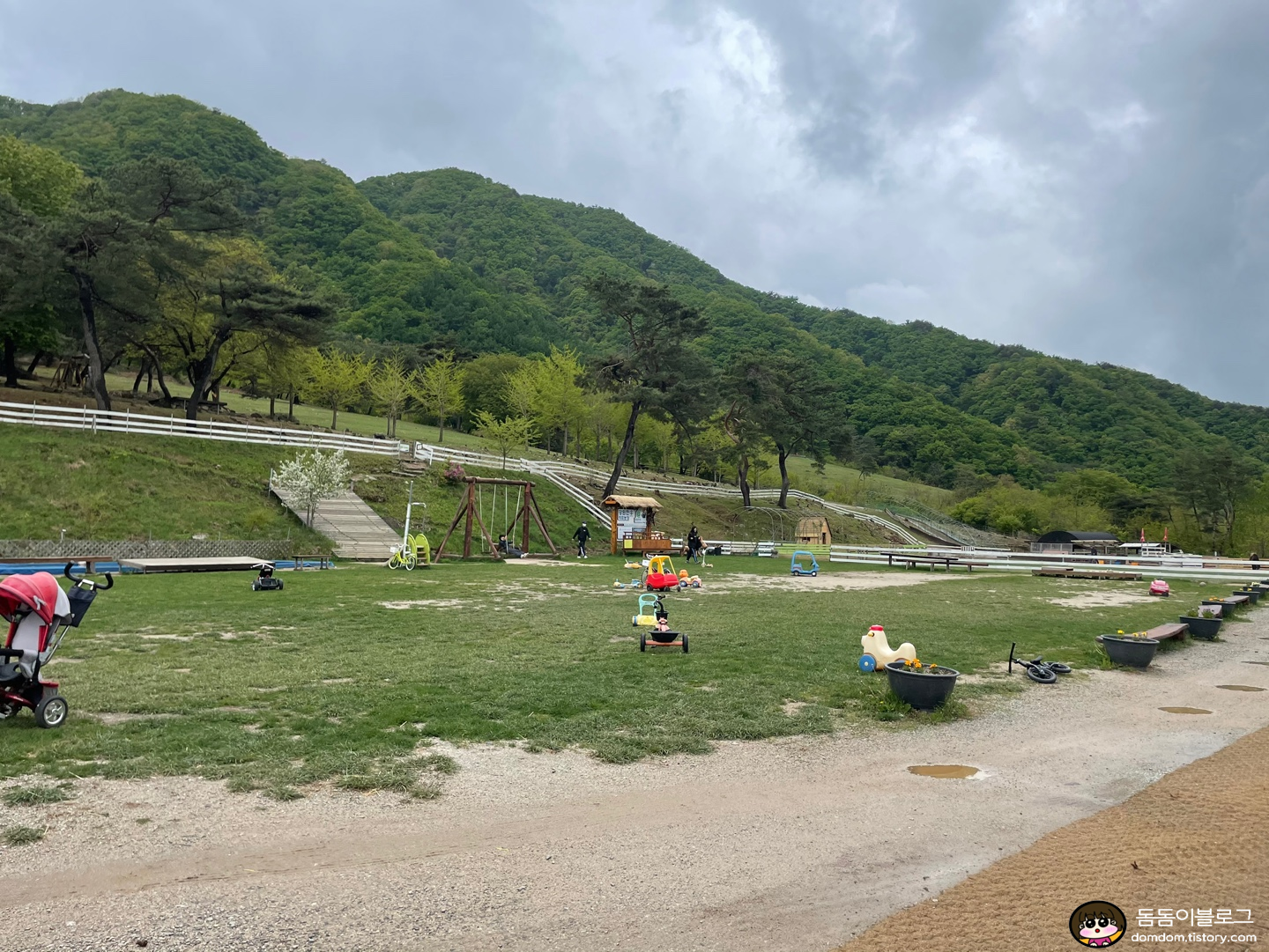 왼쪽에는 이렇게 넓은 정원(?)이 펼쳐져 있어요. 처음에는 아가들이 많아서 유모차나 미니 씽씽카나 다 방문한 사람들이 가져온 줄 알았는데, 이 곳에서 아가들 놀으라고 씽씽카들을 풀어놓은 것 같아요.