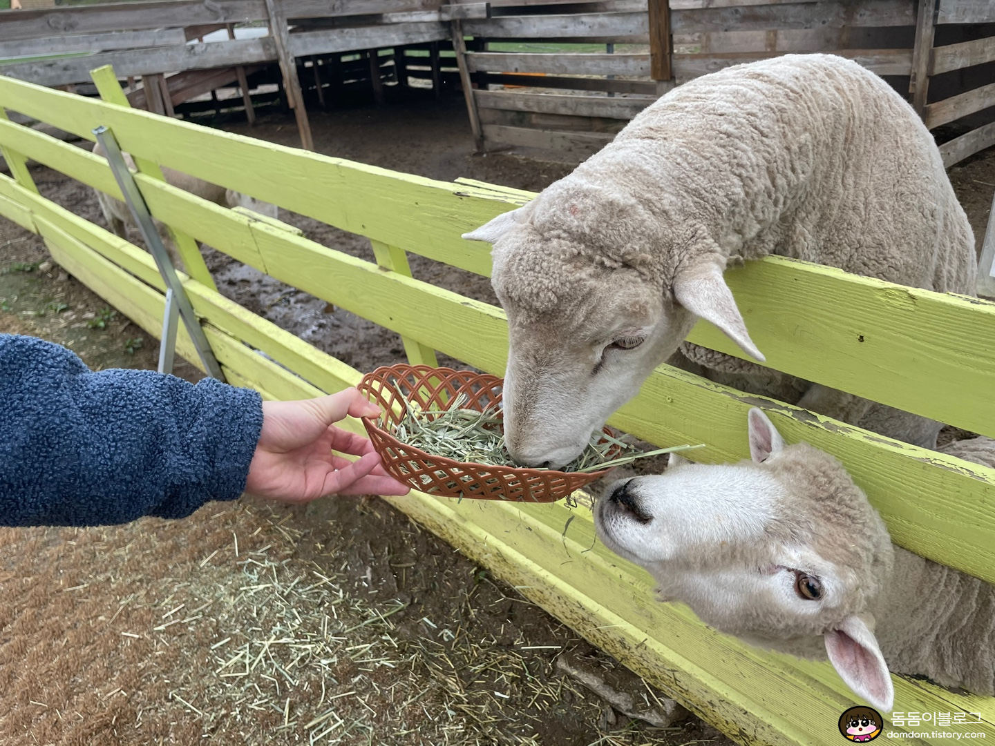 양들한테도 풀때기를 줄 수 있어요. 약간 여기는 먹이주는 체험 목장같은 느낌적인 느낌ㅋㅋ 근데 동물마다 먹는 풀때기 종류가 달랐어요. 뭔가 목장관리자들이 동물들의 먹이를 관리하는 방법이 있는 것 같았습니다!!