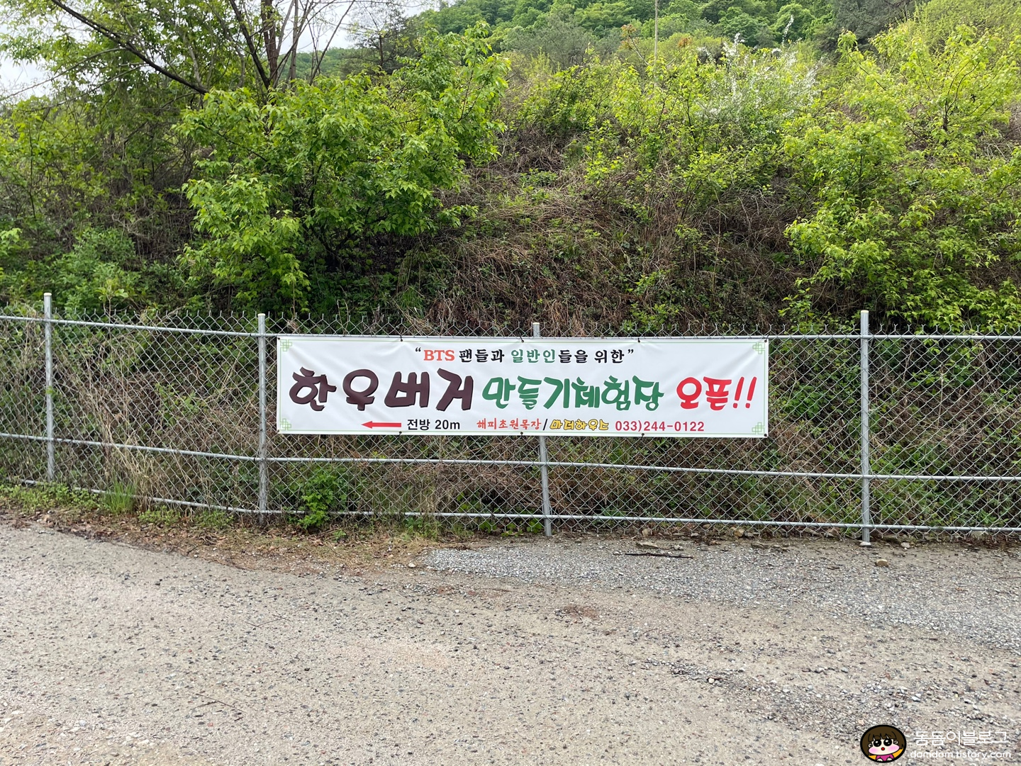 입구 옆에는 BTS팬들과 일반인들을 위한 한우버거 만들기 체험장 오픈!! 이라고 현수막이 걸려져있는데, 방탄소년단이 여기에 왔었나봐요! 하지만 제가 갔던 날은 한우버거 만들기체험장은 닫혀있었습니다..!