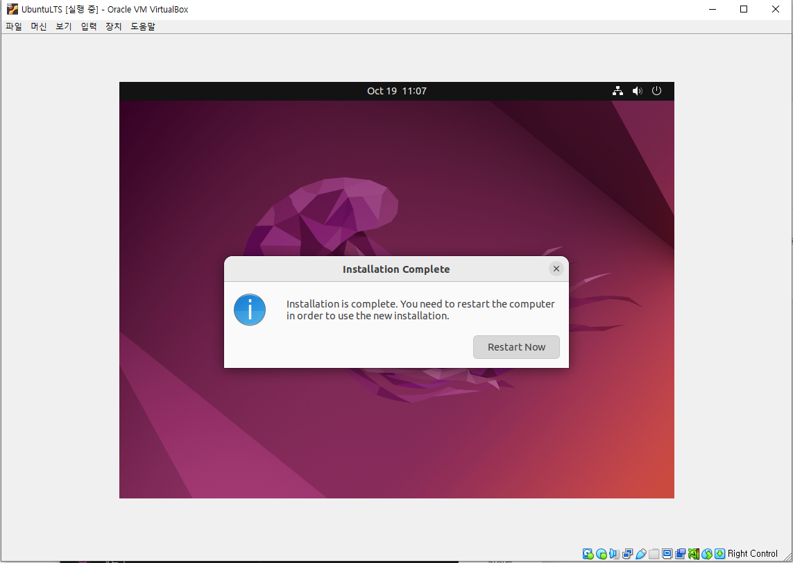 재부팅 로딩이 다 끝나고 OS 환경설정까지 마무리되면