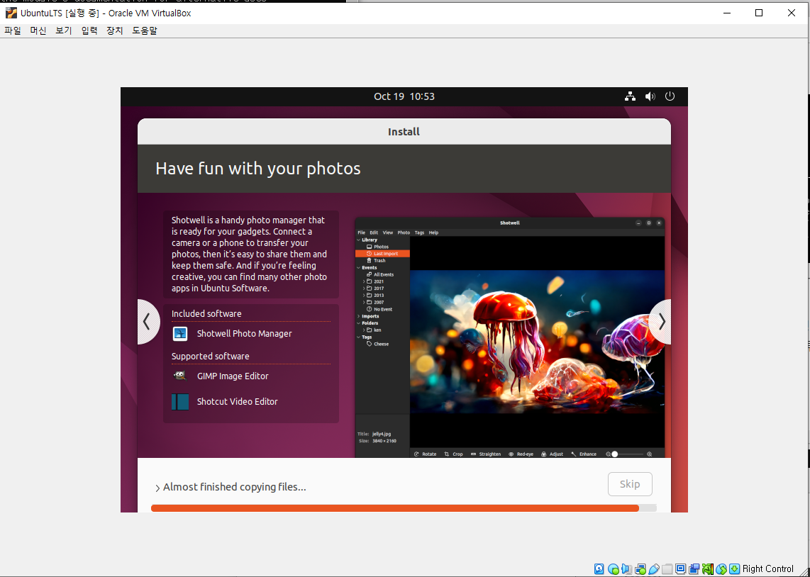 VirtualBox에 우분투 데스크탑 환경 만들기 끝!!