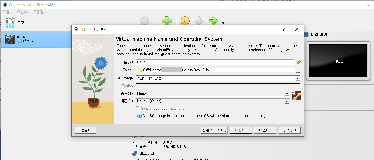 다운이 모두 완료되면, virtualbox에 우분투 데스크탑 버전을 만들어주면 되는데요,