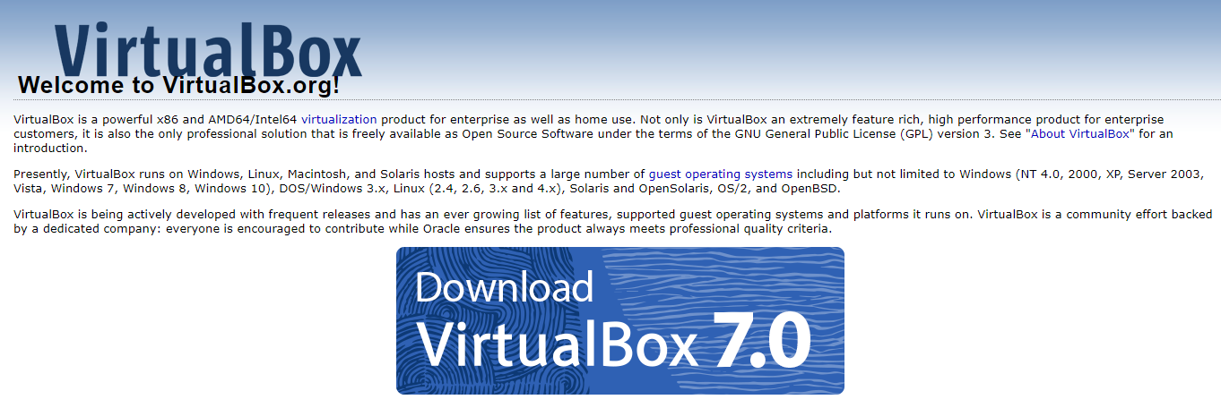 Welcome to VirtualBox.org! News Flash New October 11th, 2022VirtualBox 6.1.40 released! Oracle today released a 6.1 maintenance release which improves stability and fixes regressions. See the Changelog for details. New October 10th, 2022VirtualBox 7.0.0 re