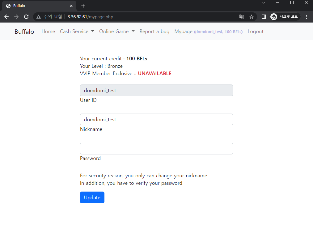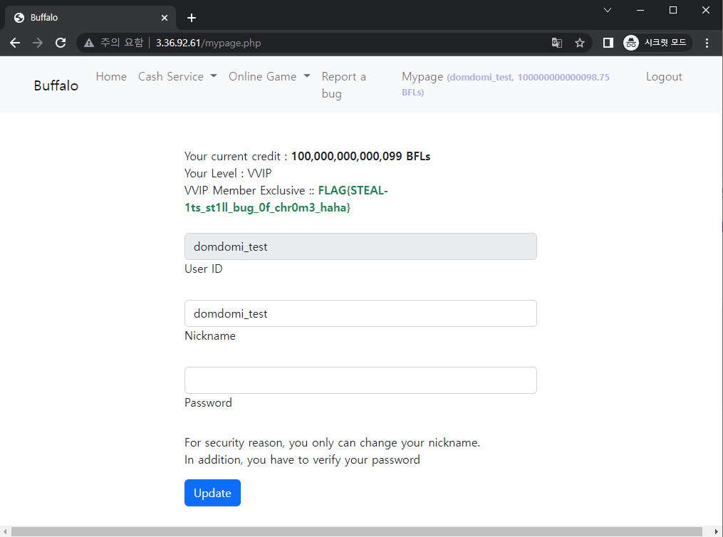 mypage.php 코드를 보면 VVIP 레벨이 되면 Flag 파일을 보여주는 것 같았습니다. 또한 VVIP 레벨이 되기 위해서는 100000000 BFL 이 필요하다는 것을 위 PHP 스크립트를 통해서 알 수 있습니다.