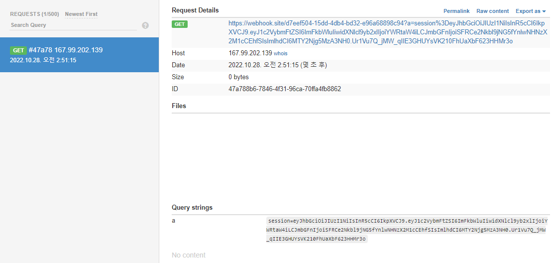 관리자의 JWT 토큰 값에 있는 것을 알 수 있습니다. JWT 의 data 영역에 있기 때문에 관리자의 세션을 탈취한 뒤 단순 base64 디코딩하면 보일 것으로 예상됩니다.