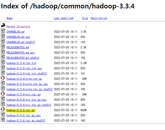 가장 최신버전 hadoop-3.3.4를 클릭합니다.