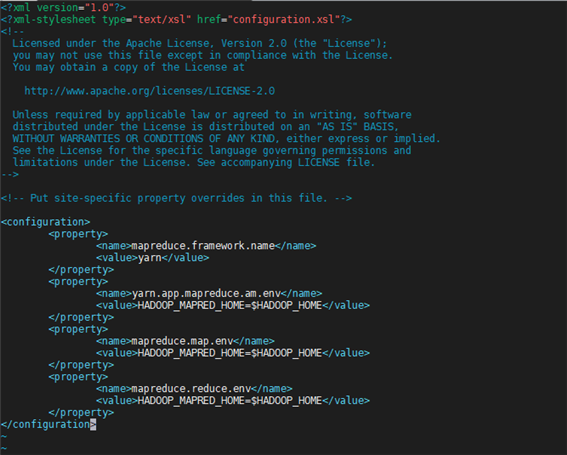 vi $HADOOP_HOME/etc/hadoop/mapred-site.xml
