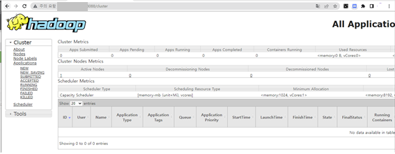 서버ip:8088 (yarn resource manager UI)
