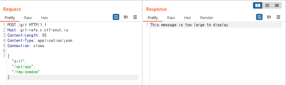 /git 경로로 POST 요청을 보내고 있었으며, json 포맷으로 배열을 보내고 있었습니다.