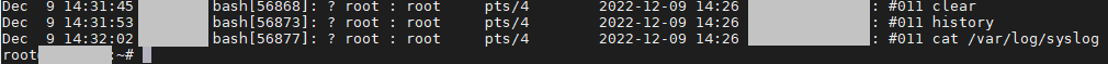 재부팅해도 계속해서 명령어 히스토리는 syslog에 남게됩니다.