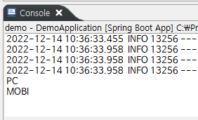콘솔창에 PC, MOBI가 정상적으로 출력되는 것을 확인합니다.