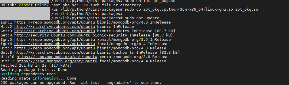 sudo unlink apt_pkg.so에서 오류가 나면 apt_pkg.so 파일 혹은 디렉토리가 없다는 뜻이니