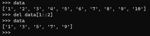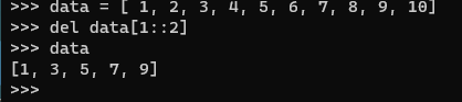 del data[1::2] (1번째 인덱스부터, 2만큼의 간격마다 삭제)를 해주면 됩니다