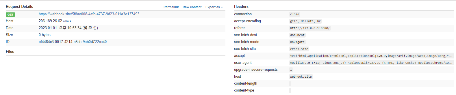 그리고 요청이 정상적으로 온 것을 확인할 수 있었습니다. 이로써 관리자를 향한 XSS 공격이 통한다는 것을 알 수 있습니다.