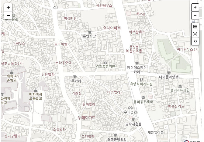 이 SGIS 지도의 장점은 아주 작은 건물 블록 단위로 이루어져있어, 타일이 엄청나게 섬세하다는 것입니다.