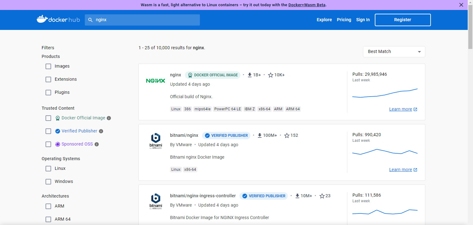좌측 상단에 있는 검색창에 nginx를 검색해보니 공식이미지 nginx가 최상단에 나왔고,