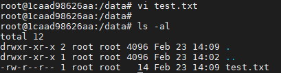 컨테이너 내부의 /data 디렉토리에서도 "test2.txt"파일을 조회할 수 있습니다.