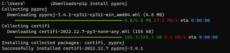 pip install pyproj