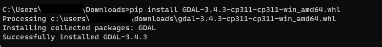 pip install GDAL-3.4.3-cp311-cp311-win_amd64.whl
