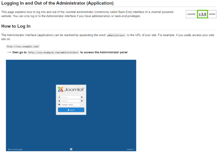 그래서 구글링으로 joomla administrator 이라고 치니깐 joomla 의 documentation 이 나왔고 아래 링크에서 관리자 페이지 접속방법을 설명하고 있습니다.
