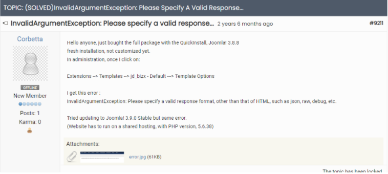 JoomDev: (SOLVED)InvalidArgumentException: Please specify a valid response... (1/1) )