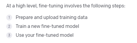 학습 데이터를 준비하여 업로드하고, GPT 모델에 데이터를 학습시키고, 모델을 사용하면 끝!