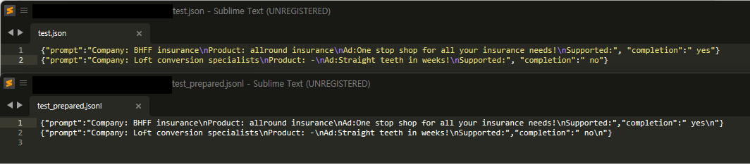 그러면 test.json이 존재하는 동일한 경로에, test_prepared.jsonl 파일이 생성됩니다.