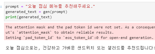 prompt = "오늘 점심 메뉴를 추천해주세요."