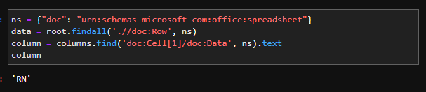 column = columns.find('doc:Cell[1]/doc:Data', ns).text
