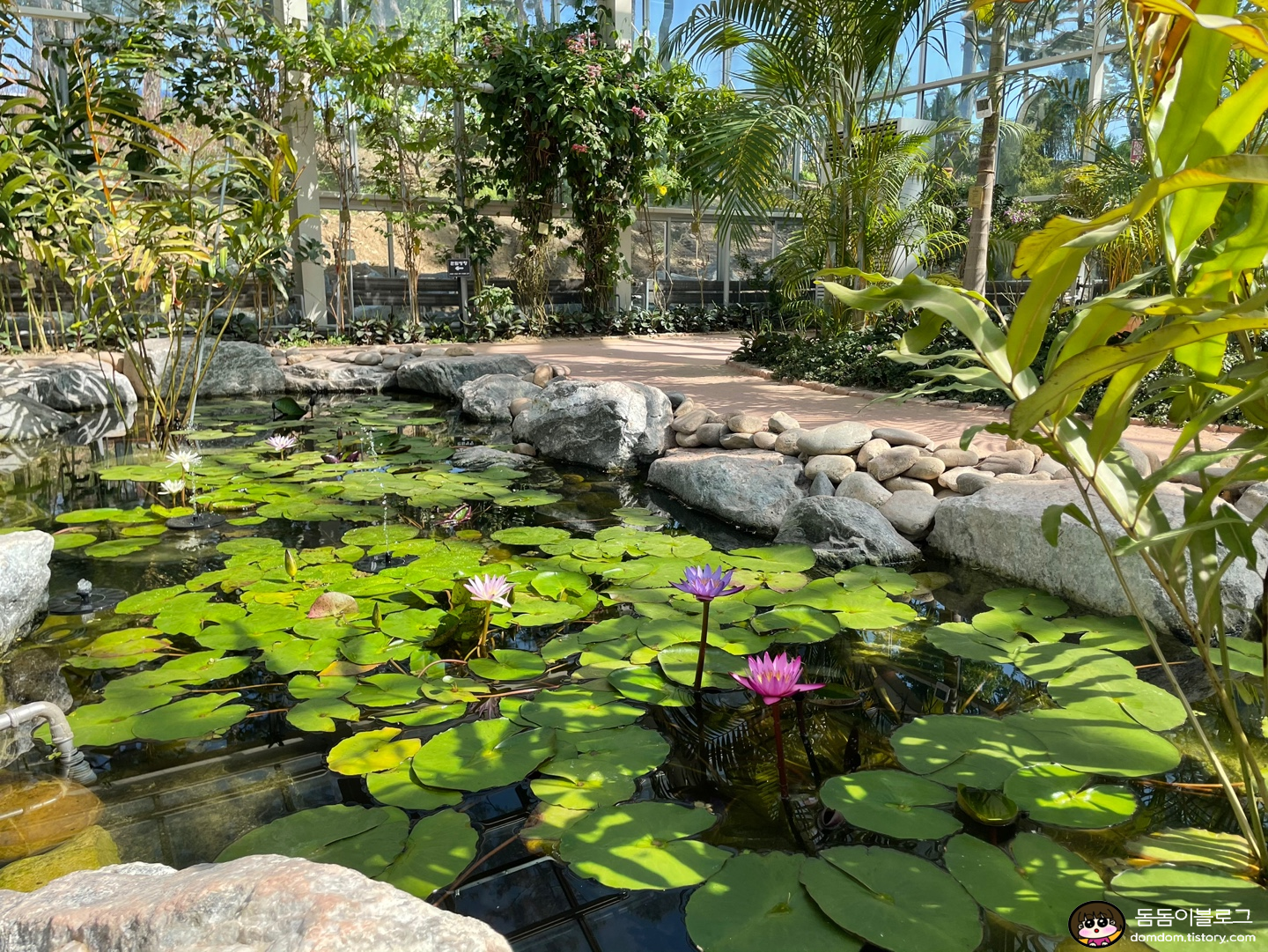 실내 온실뿐만아니라 실외에 연꽃도 있고, 그 물속에 물고기들도 엄청많이있어요.