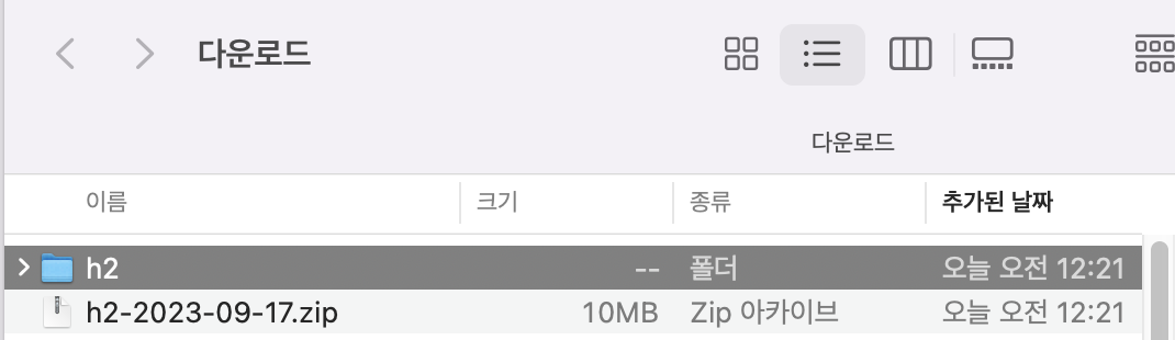 압축을 풀고나면 h2 디렉토리가 생깁니다.