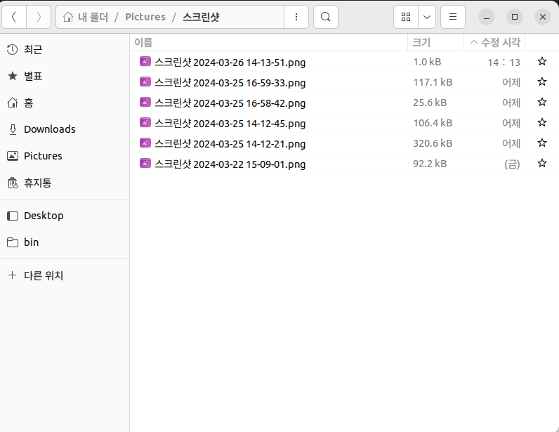 내폴더/Pictures/Screenshoots 경로에 자동으로 저장됩니다.