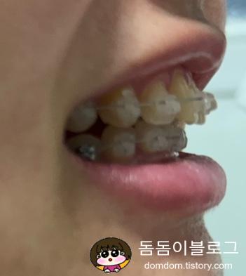 아직 과개교합 치료는 나중에 시작한다고 하셔서 이빨에 교정기만 붙이고있지만