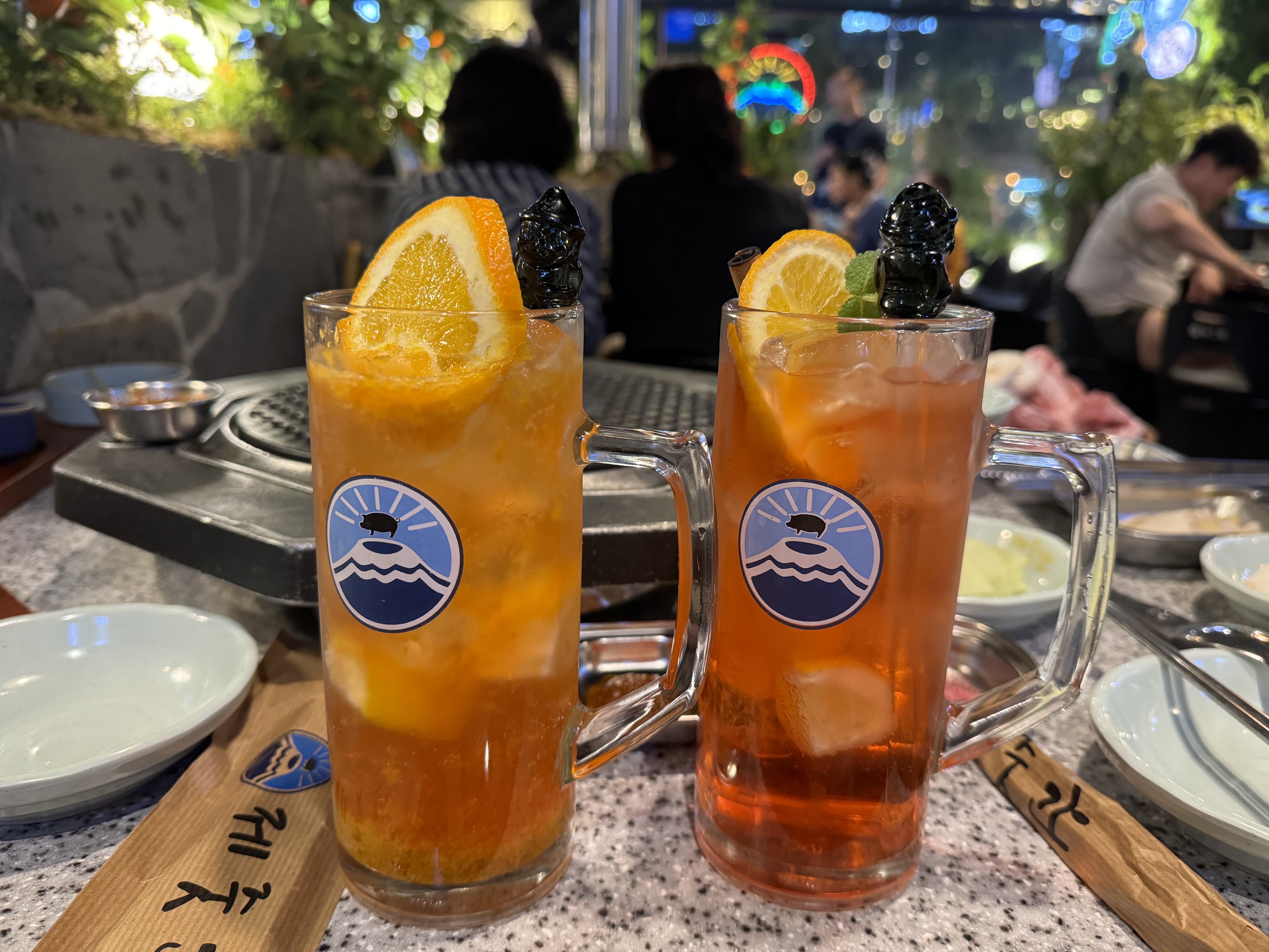 고기 나오기전에 먼저 서귀포 한라봉 하이볼과 제주올레 와인하이볼이 먼저 나왔는데요.