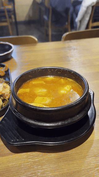순두부찌개에서는 뜨끈한 국물 연기가~~~