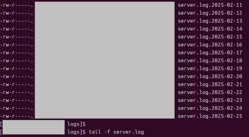1. cat 명령어로 로그파일이 변경되는 내용을 계속 보고 싶다면