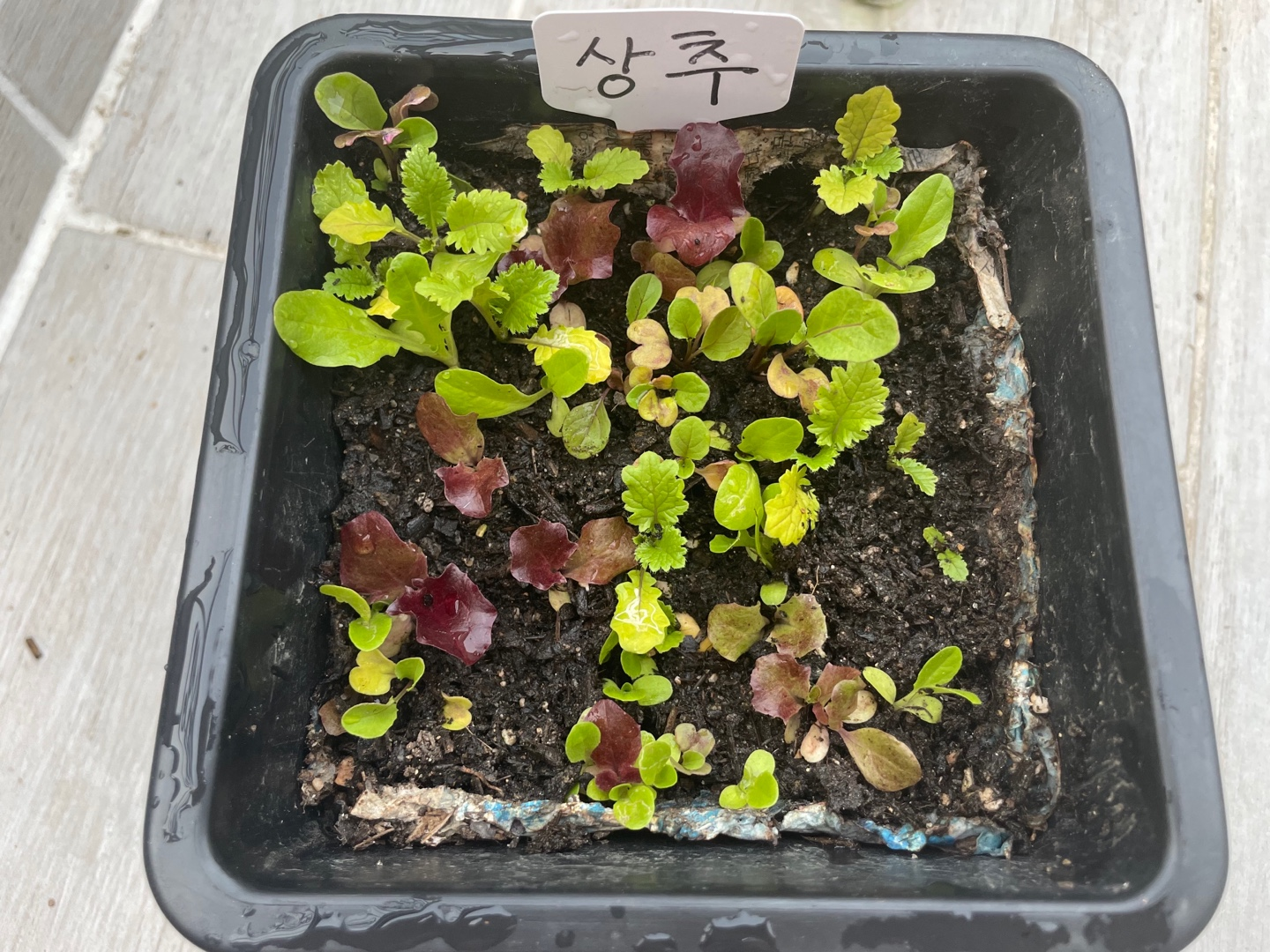 아래는 딱 4주차가 되는 날! 물을 주고서 찍은 쌈채소에요!