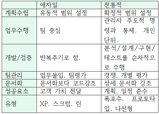 : 절차보다 사람중심으로 변화에 유연, 신속적응, 효율적 개발하는 신속 적응적 경량 개발방법론. 개발 과정의 어려움(기존 개발방법론의 한계) 극복 위해 모색됨.