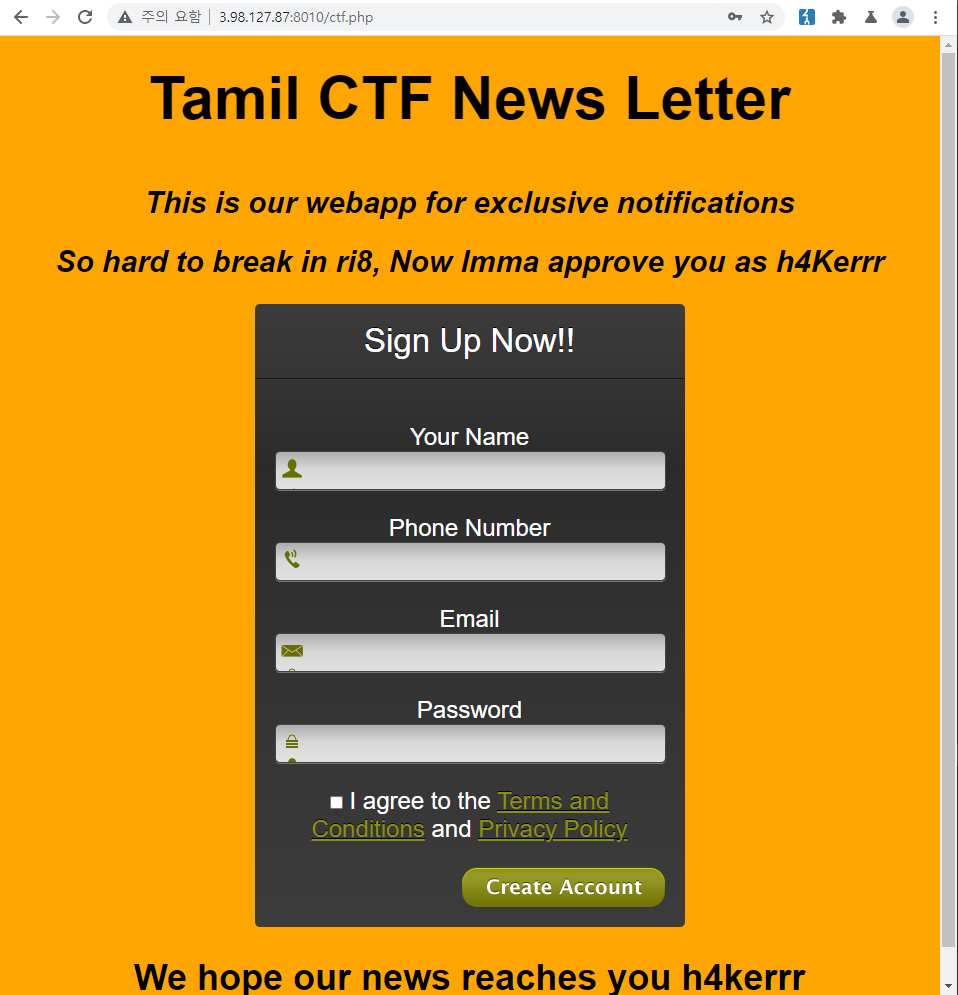 문제 설명 : TamilCTF plans to send news updates to their participants, a web developer from their team creates a Web App for that. You have been informed to steal the flag from their Web App.