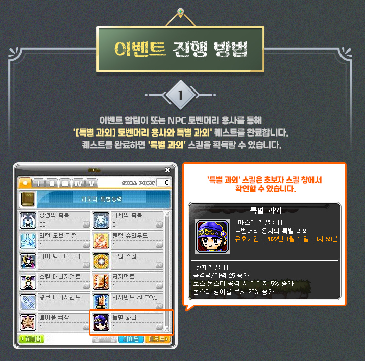 하지만 아까도 말했다시피 특별과외스킬은 2022년 1월 12일까지만 쓸 수 있어요