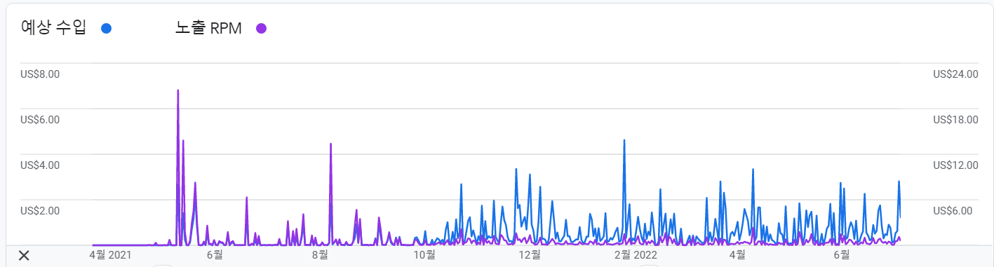 페이지 RPM = 조회수 1,000회당 평균수익 = (예상 수입/페이지 뷰)*1000