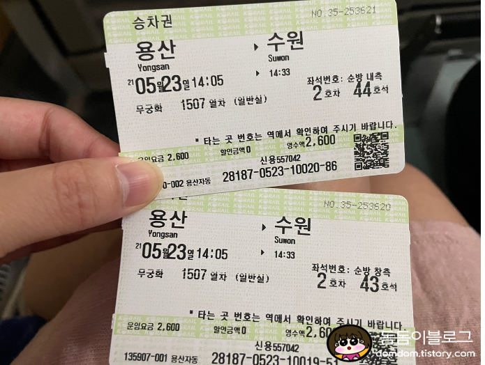 용산역에서 수원역으로 무궁화호를 타고 출발했어요.